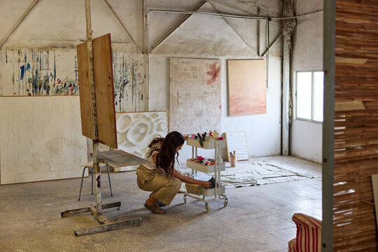 Organizing grains in a jar and folding fabric at a home workspace for a tidy kitchen environment