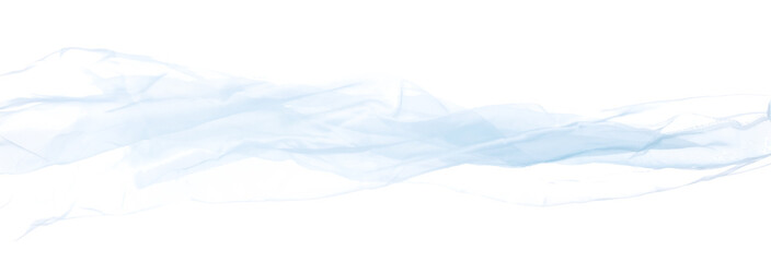Blue sky Organza fabric flying in curve shape, Piece of textile blue sky organza fabric throw fall in air. White background isolated motion blur