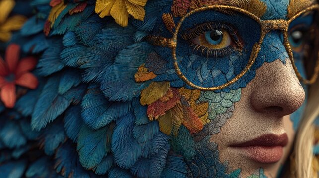 Feathered Spectacle: A close-up portrait with ornithological adornment