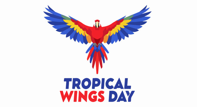Vibrant Macaw Parrot with Spread Wings for Tropical Wings Day.