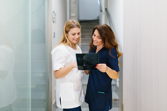 Doctor dentist showing patient's teeth on X-ray