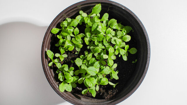 Lush green seedlings sprout in rustic clay pot, embracing Earth Day vibrancy and Otis Regeneration Festival's verdant symphony
