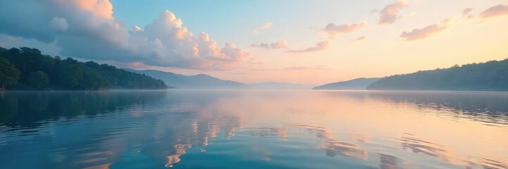 Serene lakeside scene with calm water reflecting a tranquil sky, perfect for relaxation and unwinding Ideal for spa, travel, or wellness imagery , shore, outdoor