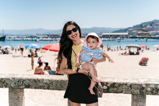 Mother and Baby on Beach Day