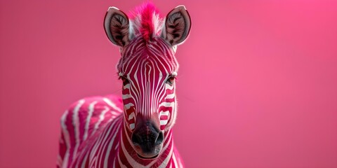 A pink Zebra in a bright monochromatic pink environment . Concept Colorful Animals, Unique Environments, Monochromatic Themes