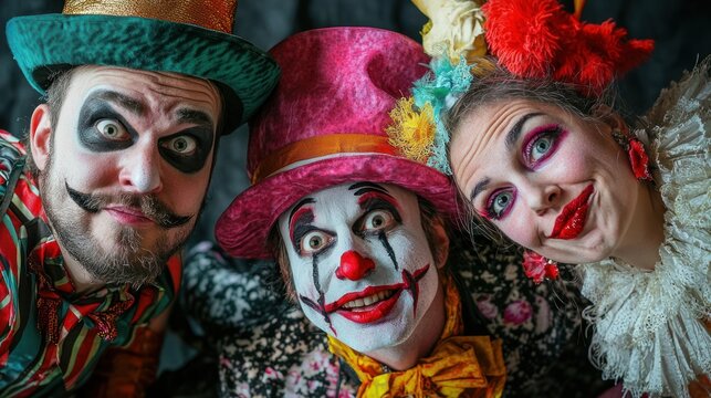 A close-up of a group of people posing in outrageous funny costumes, showcasing their creativity and sense of humor