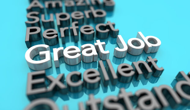 Great Job Outstanding Work Good Excellent Performance Review Words 3d Illustration