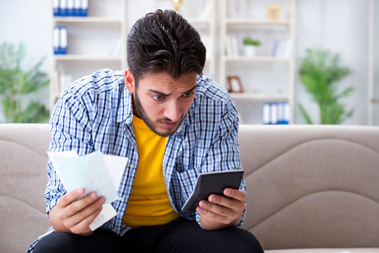 Woman With Digital Tablet Sitting At Table At Home Reviewing Domestic Finances