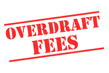 Overdraft fees. Yellow warning tapes with inscription "OVERDRAFT FEES" on the white surface. Isolated. 3D Illustration