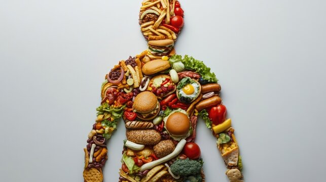 Young obese female eating sandwich, sitting near the fridge at night, calories