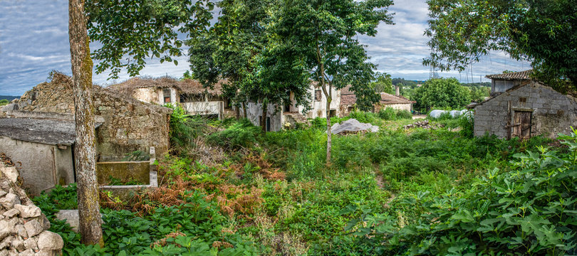 Panorama Of Deserted Quinta (Estate), With Multiple Buildings And Overgrowth Greenery, Braga, Portugal