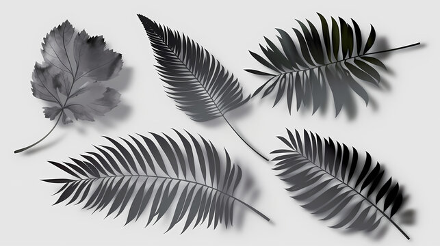 Realistic transparent shadow from a leaf of a palm tree on the white background. Tropical leaves shadow. Mockup with palm leaves shadow.