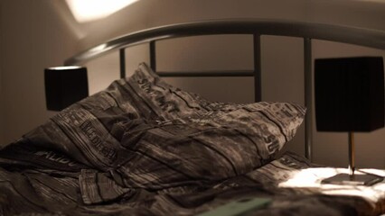 young man wakes up in the morning in bed and gets scared that he overslept to work
