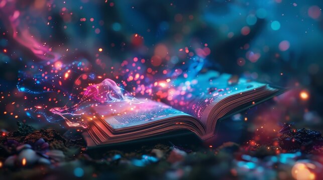 Magic Book - A book with magical glow and sparkles in a dark background, it seems to have its own life. - A book with magical glow and sparkles in a dark background, it seems to have its own life.