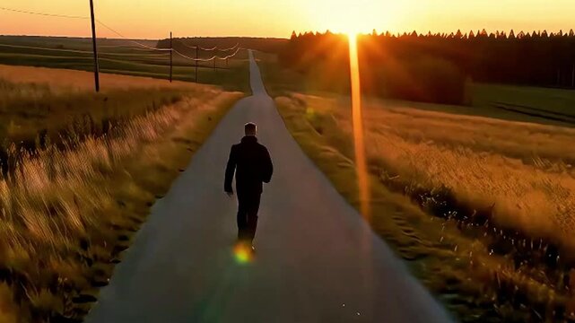 Crowd of people walking on a city crosswalk during rush hour. Motion blur of commuters in the golden sunset light. Urban lifestyle in a metropolis