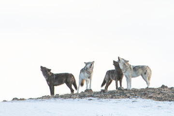 majestic wolf pack embracing the spirit of the wilderness in isolated black smoke - mystical wildlife concept