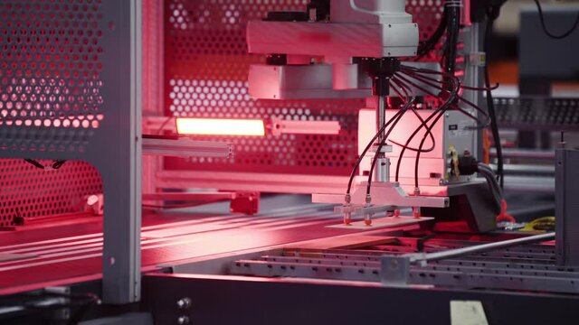 Automatic conveyor belt of production line of juice on beverage plant or factory, modern computerized industrial equipment