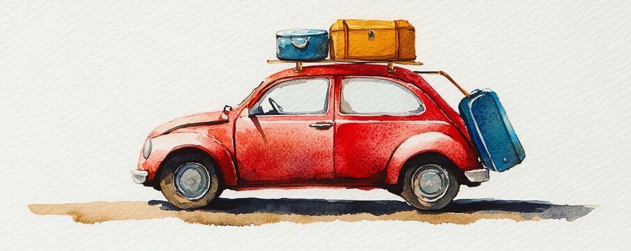 Organized packing suitcase flat design top view travel theme cartoon drawing colored pastel
