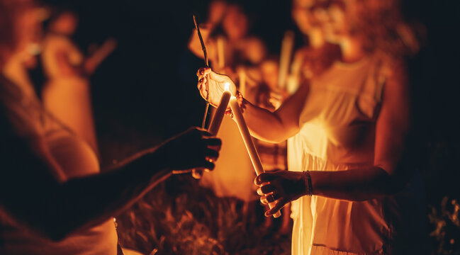 Celebrate Yule with ancient pagan traditions in a mystical forest setting filled with candles