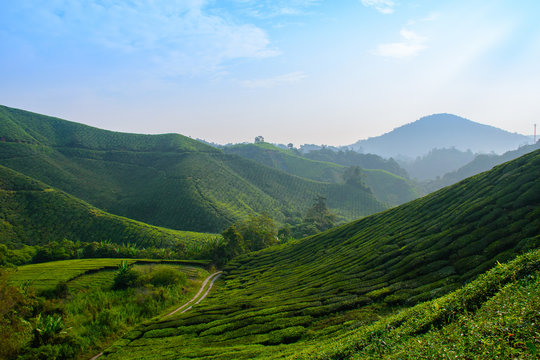Sunrise of tea plantation in Cameron Highland, Malaysia.