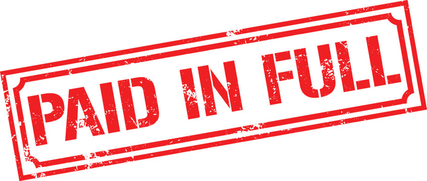 Red and white rectangular stamp with the words paid in full in bold red letters isolated on transparent background