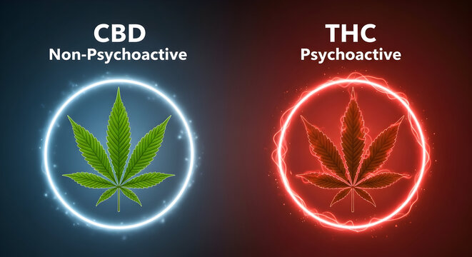 CBD Non-Psychoactive THC Psychoactive 64437672 1