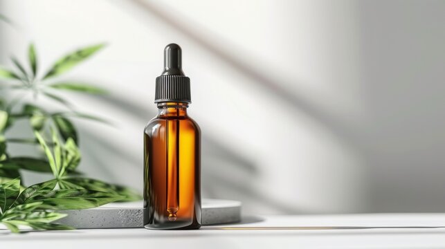set of marijuana buds, with dispenser bottle, white background.