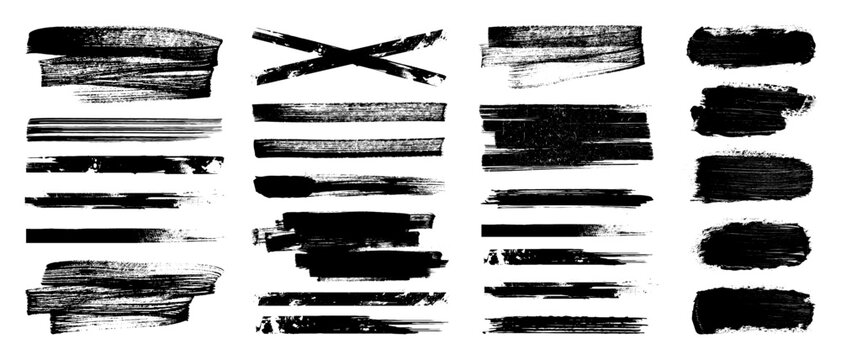 Paint brush strokes. Brush strokes vector. Hand drawn brush stroke textures set. Grunge banner background. Vector paint bold brush strokes. Ink brush stroke set