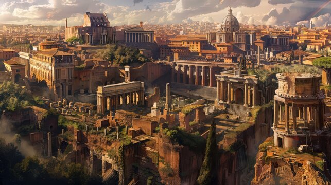 Ancient Rome Forum Romanum and Palatine hill scenic view