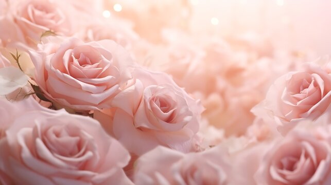 Botanical concept, wedding invitation card - Soft focus, abstract floral background, pale pink roses. Macro flowers backdrop for holiday brand design : Generative AI