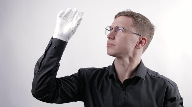 Enthusiastic Paleontologist Carefully Examining Dinosaur Fossil in Research Laboratory Setting