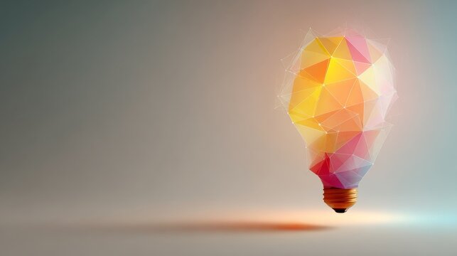 Abstract Low-Poly Lightbulb;  Innovation, Creativity, and Technology Concept; Warm Color Palette.