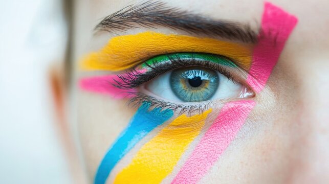 A close-up shows a painters palette overflowing with brightly colored paints.