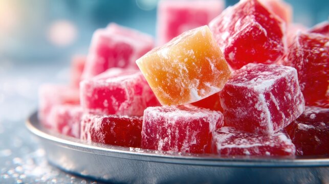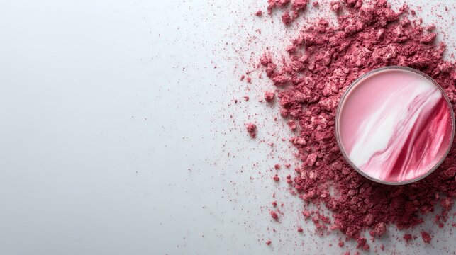 An aesthetically pleasing arrangement featuring creamy pink dessert swirled with powdered dust, creating a visually delightful scene that tantalizes the senses and evokes indulgence.
