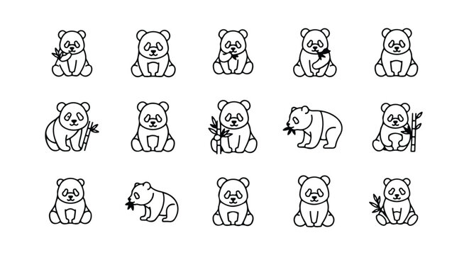 Collection of stylized panda bears and bamboo stalks in various arrangements and designs