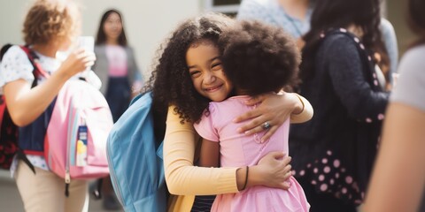 A child experiencing the first day of school in kindergarten or preschool. Showing the emotion of the day - Generative AI