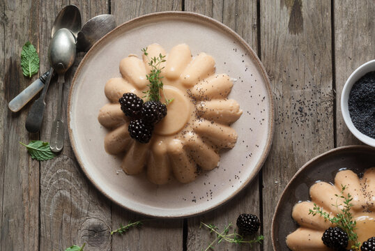 Tasty panna cotta dessert. Super photo realistic background. Generative ai illustration