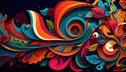 Prints of Warm colors The pantograph shapes floating in the swirling waves show a fantasy world like a push-painting. Illustration generated by AI in Abstract, Elegant and Modern
