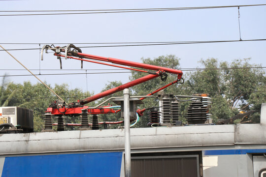 railway pantograph on a passenger train