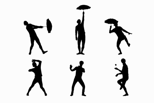 Mime artists. Street actors comedian show theatrical mime people in action poses exact vector illustrations set