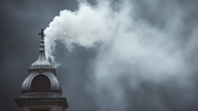 White smoke billows from the chapel chimney, a powerful symbol signaling the election of a new pope, capturing a historic moment of global attention, ai generated