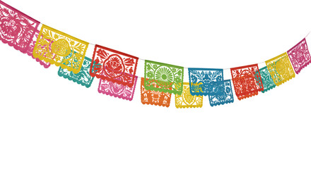 Mexican papel picado paper cut holiday flags and banners. Day of the Dead, Dia De Los Muertos and Cinco de Mayo flags with. Vector illustration. isolated on a white background.