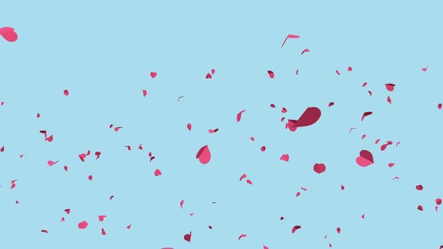 festive background with many nice hearts made of pink paper flying up slowly on blue