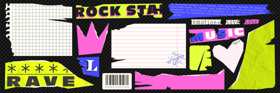 Set of woman hands, lips and eyes with doodle elements. Crown, heart, star. Retro collage elements for posters, banner, social media