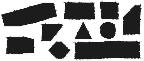 Set trendy Torn paper sheets with sharp edges isolated transparent background. Black Ripped papper pieces collection on white. Vector illustration can used postcard and banner design.