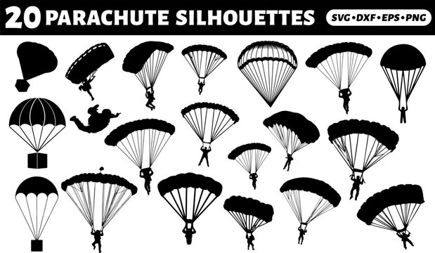 Parachute Silhouettes, print ready Silhouettes style, template, tee, graphic symbol. Vector illustration