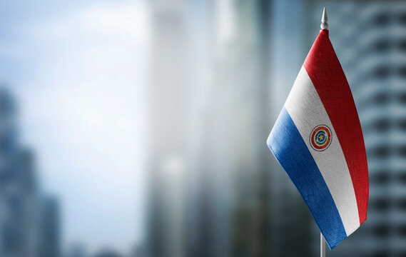 Waving flag of Paraguay in blue sky. Paraguay flag for independence day. The symbol of the state on wavy fabric.