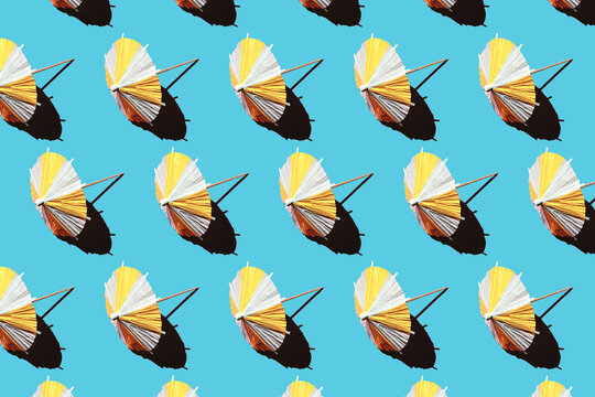 set of colorful beach umbrella isolated on white background in flat style