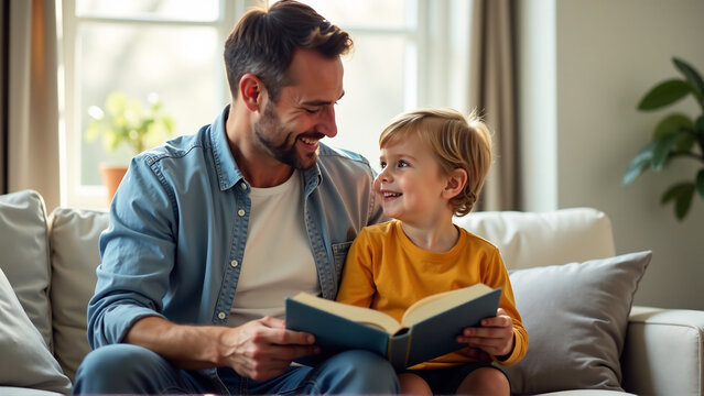 Father and son reading together for father's day celebration