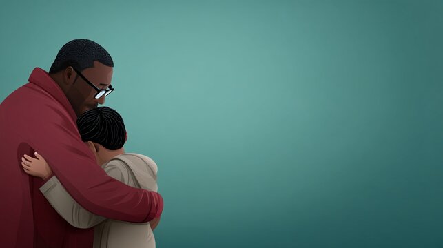 Father provides a comforting hug to his child in a moment of tender love and support.
